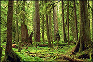 - The Hoh Rain Forest is a not-to-be-missed attraction here on the Olympic Peninsula. Moist ocean air from the Pacific brings over 150" (record of 211") of annual rainfall to this area, which, along with presence of Sitka spruce and "colonnades" (row of trees that grew atop downed trees called "nurse logs"), qualify the west-facing valleys of the Olympics as the only temperate rain forests in the northern hemisphere! The park was established in 1938 after President Franklin D. Roosevelt visited and was duly impressed with the region and it's wildlife. Three loop trails near the Hoh Visitor Center are easy to stroll and give a great sampling of the area: The Hall of Mosses Trail is 3/4 mile and shows the moss-draped maples, magically green in the spring, spectacular with color in the fall and a treat any time of year; the 1-1/4 mile Spruce Trail follows the Hoh River along red alder and maple "bottom", and shows the landscape carved by this glacier-fed river; and a paved 1/4 mile path suitable for a wheelchair or stroller. The year-round Visitor Center is the starting point for many longer and more challenging hikes up to the alpine meadows and glaciers.